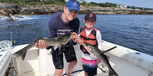 Striped Bass/Mackerel/Bluefish. On these trips, we will cruise and fish the scenic coast along the cliffs of York and Ogunquit or the sandy beaches of Wells up to Walkers Point in Kennebunkport. We will stop for some fresh Mackerel, our top choice bait for Striped Bass.